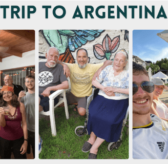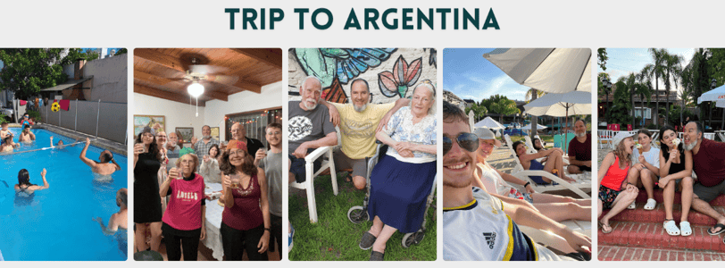 b) Then we travel to Argentina to support our parents and see friends and family.